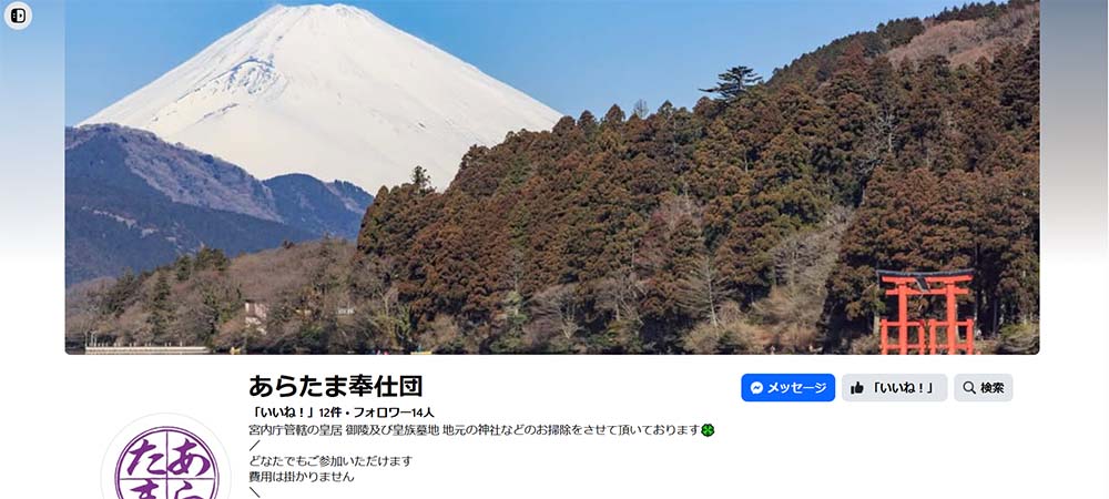 神社清掃奉仕団体「あらたま奉仕団」のFacebookです。